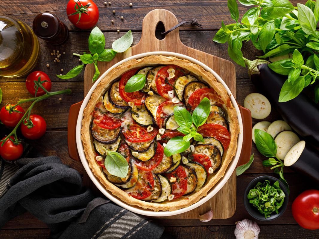 Autres plats à essayer : les tomates farcies au chèvre, le risotto de petits pois, la pizette d'aubergine, la salade de pois chiche, légumes et feta, sans oublier la tarte tomate, aubergine et courgette, pour une touche de gourmandise.