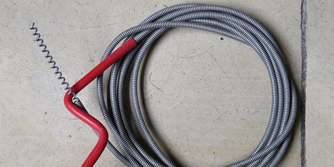 Siphon coudé : insérez le furet tout en tournant la manivelle. Lorsqu'il atteint le bouchon, faites-le tourner pour le déloger. Nettoyez la tête du furet entre chaque essai pour mieux éliminer l'obstruction.