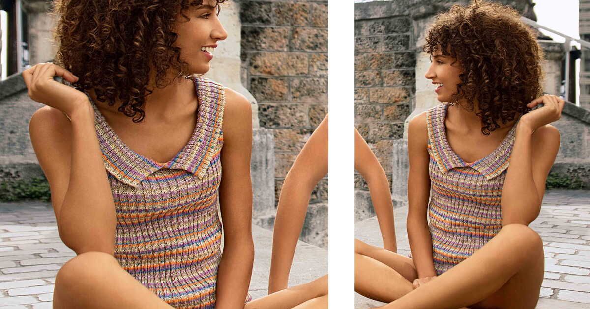 Ce modèle, à réaliser en côtes 2/2, est non seulement simple mais également ludique. Il se compose de deux cols rayés qui accentuent joliment le décolleté. Parfait pour les tricoteuses de tous niveaux, ce top apportera une touche de fraîcheur à vos ensembles d'été.