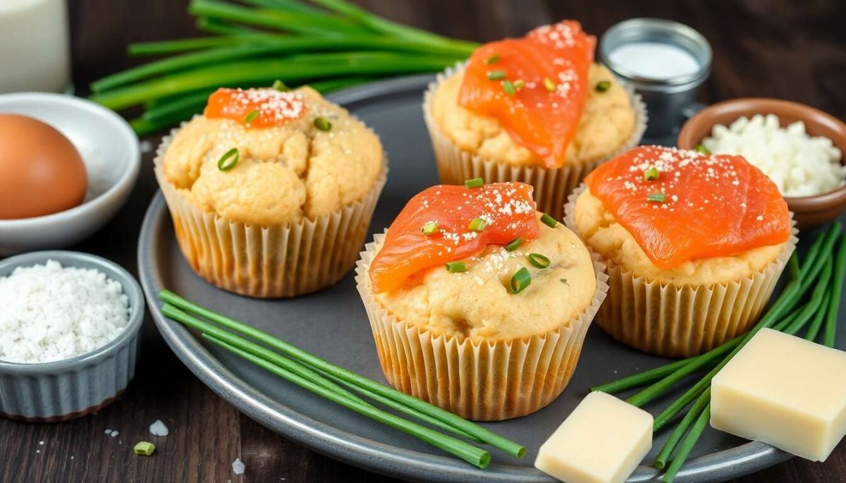 Ces muffins au saumon fumé et à la ciboulette constituent une version raffinée du muffin salé traditionnel. Leur origine se trouve dans la cuisine anglo-saxonne, où les muffins sont souvent préparés sous des formes sucrées ou salées.