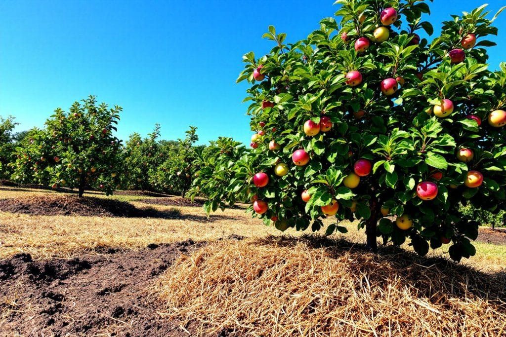 Un paillage épais installé autour de chaque pommier peut faire toute la différence. Non seulement il conserve l'humidité, mais il régule également la température du sol, minimisant ainsi le phénomène de dessèchement entre les arrosages. En protégeant délicatement les racines, ce rempart naturel est précieux pendant les épisodes de chaleur intense.