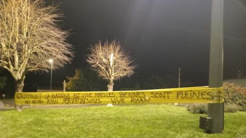 Une vidéo, remise à la presse, montre plusieurs individus quittant les lieux après avoir déployé des banderoles sur un rond-point. Une membre de l'équipe de Griffault a précisé : "Des soutiens qui ont pris connaissance de ces banderoles les ont retirées", ajoutant que la gendarmerie était sur place pour faire les constatations nécessaires.