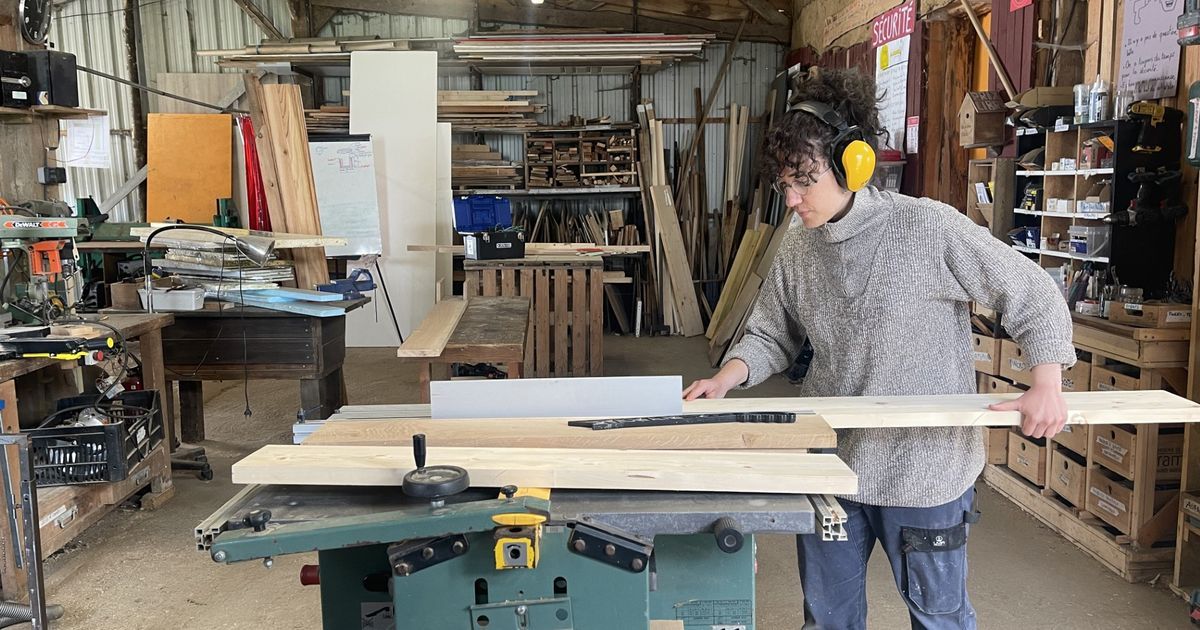 Agée de 26 ans, Inès a établi un espace de cofabrication et d’initiation au travail du bois au sein de l'atelier d'artisanat durable Vilaine fabrique. Deux ans après un service civique dans cet environnement, elle anime désormais des stages de deux jours, permettant aux participants de se familiariser avec les outils traditionnels comme les ciseaux à bois et la scie manuelle :